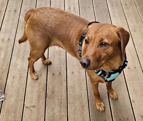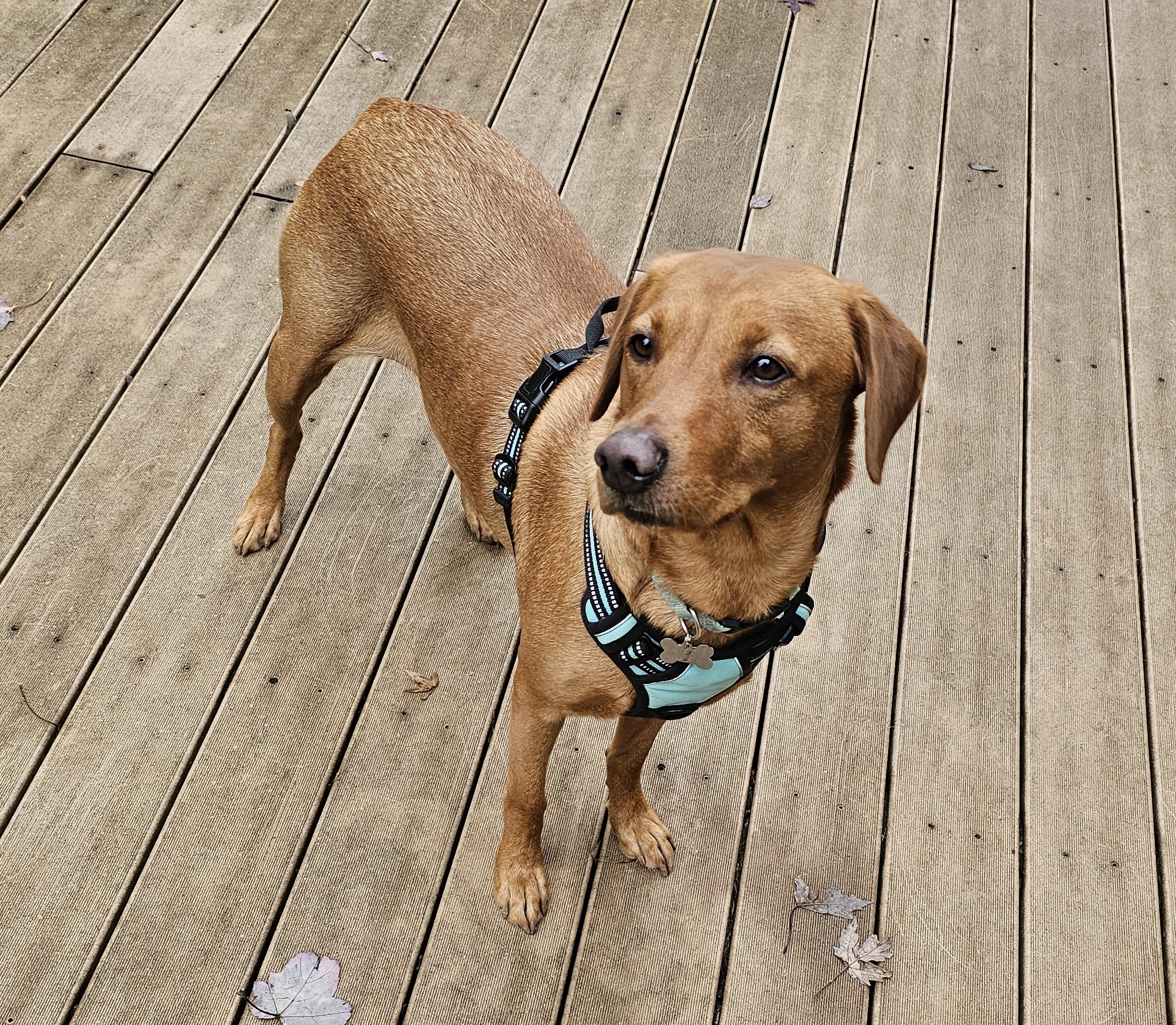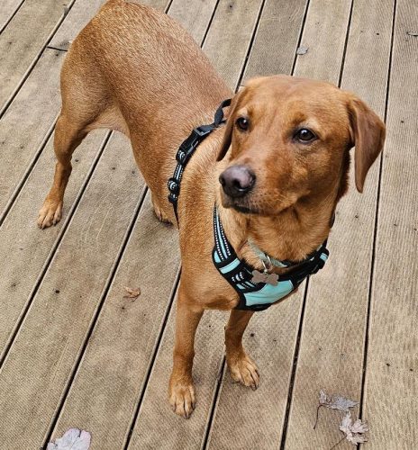 Kinni is a fox red full British Lab female. She is a daughter of Jasper and Emmy.