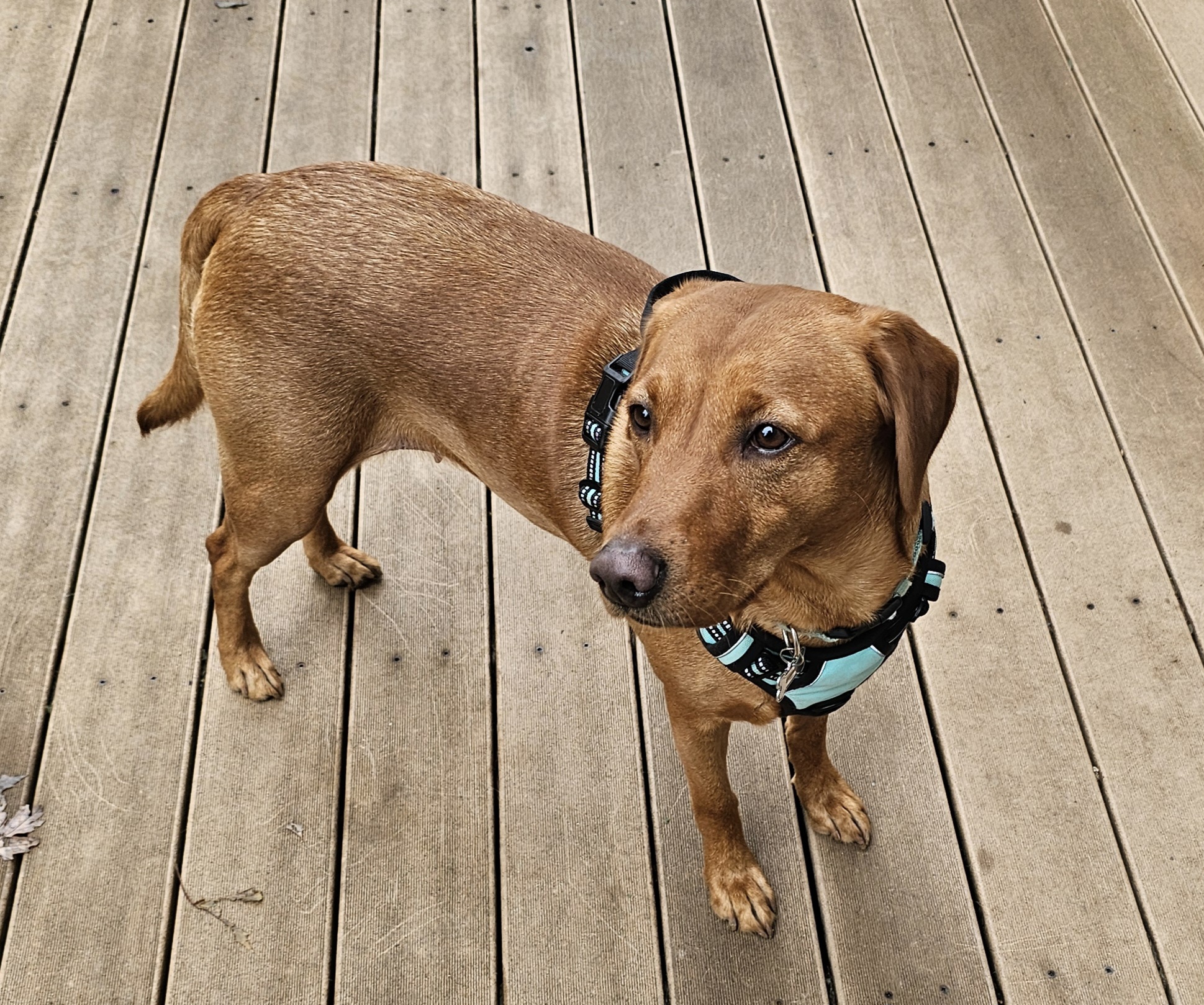 Pepin is a fox red full British Lab female. She is a daughter of Bella.