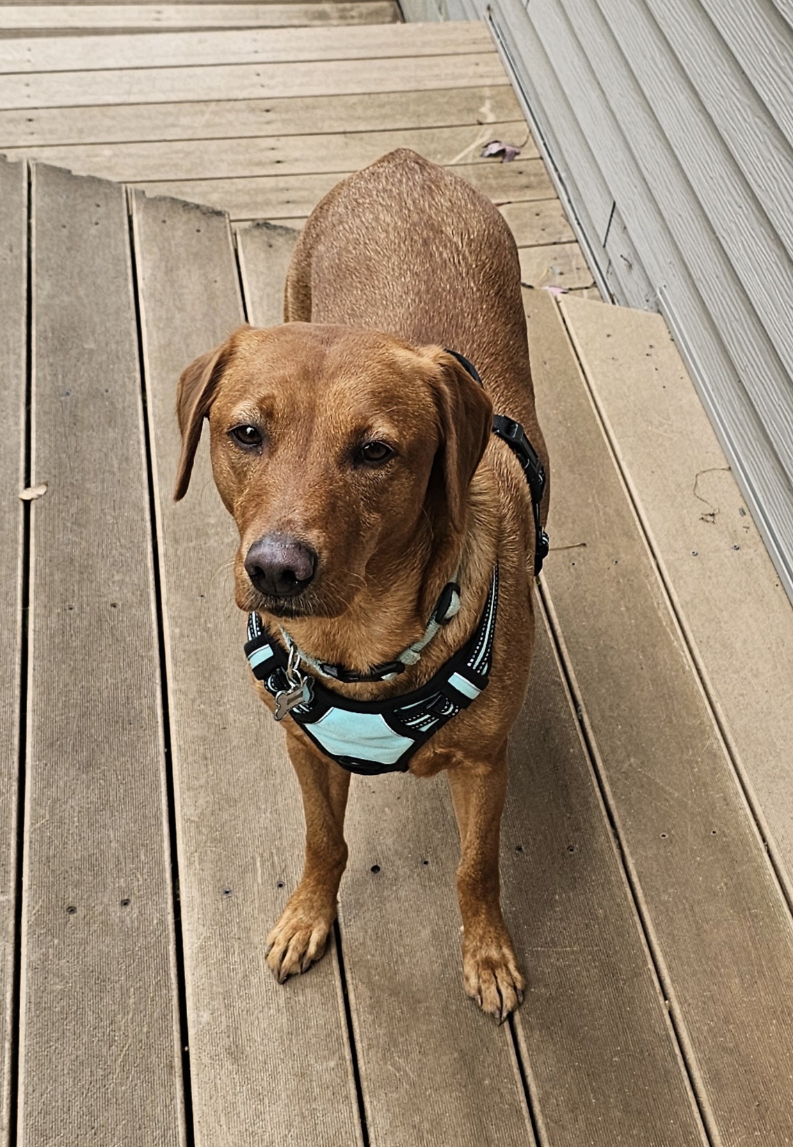 Emmy is a lighter fox-red full British Lab female. Very calm temperament. More of a slimmer build. Emmy is a daughter to Ruby.